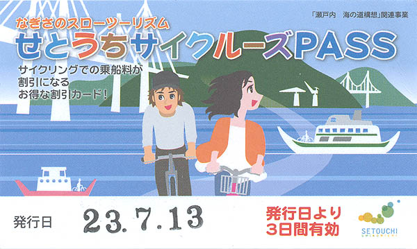 PASSは安芸津港の旅券発券窓口でサイクリングであることを伝え,日付・県市までの簡単な住所・滞在期間 を記帳すれば即時発行/適用してもらえます。