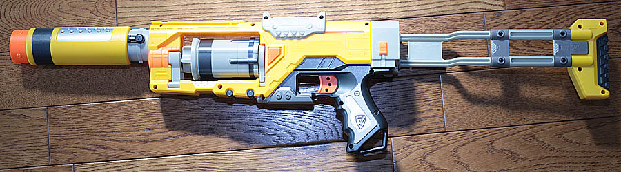 全長1メートルを超える大型ブラスター。リーコンと同じ6連装マガジン。