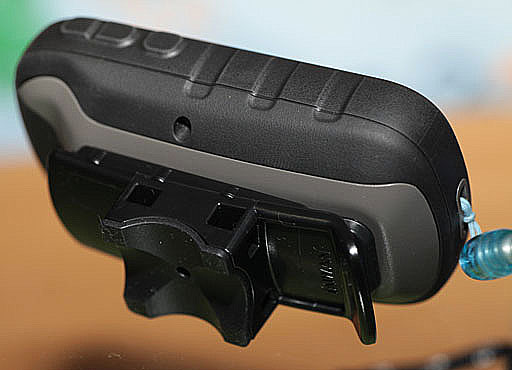 取り外すときはブラケットのベロを押し下げてロックを解除しつつ,etrex を上方に引き抜くだけです。